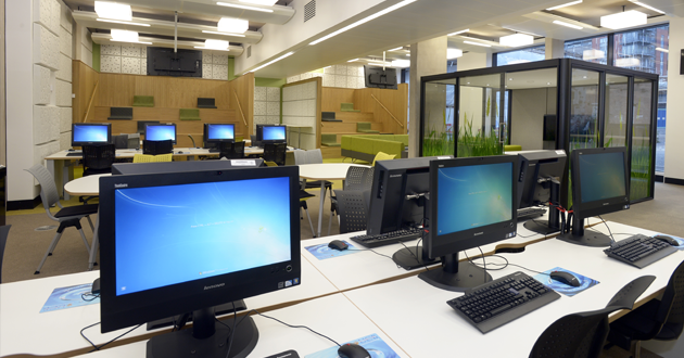 There are also more than 120 PCs available for students to use throughout the building.