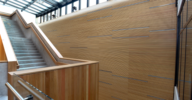 Jan 2020: Lots of natural wood interspersed with recessed lights makes this building special.