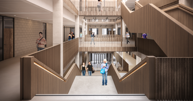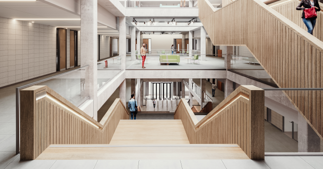 Break-out areasThere will be break-out spaces and semi-formal meeting areas for students and staff to discuss assignments and projects, while Moss House will also be the higher education home of the University’s Guild of Students.