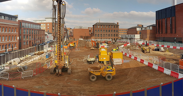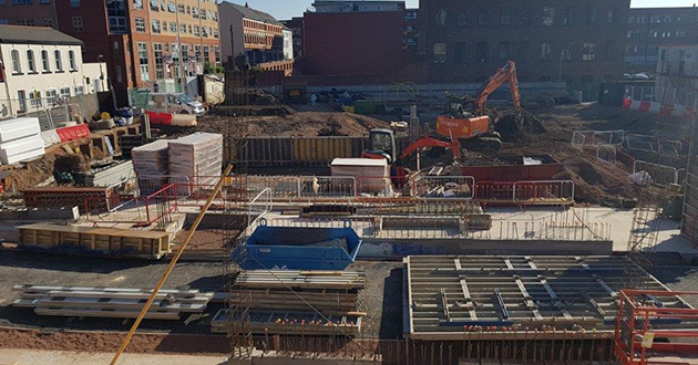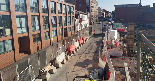 April 2018: More site preparations underway. Looking up George Street towards Newhall Street.