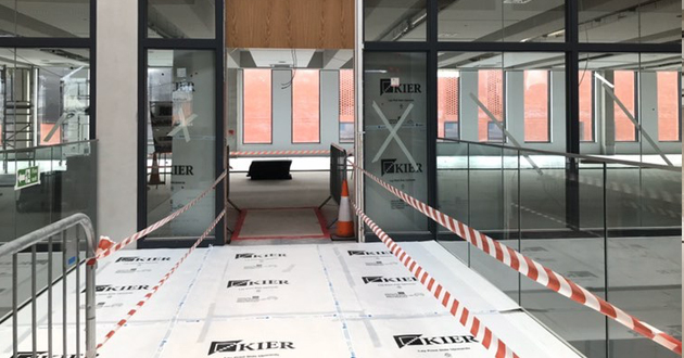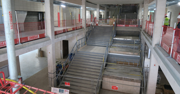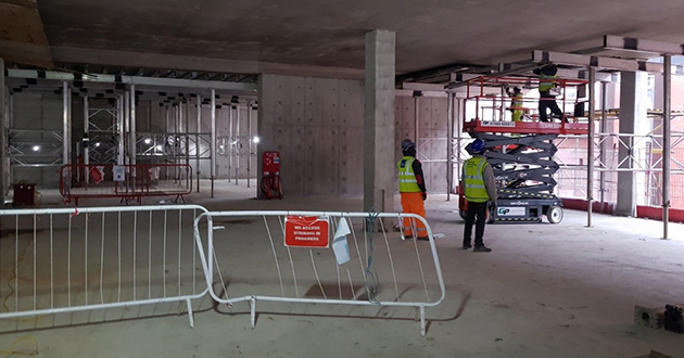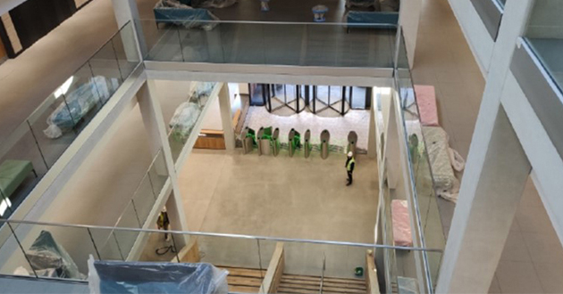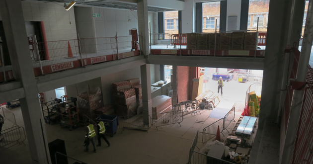 Aug 2019: Workers start construction on the reception area, bottom right.