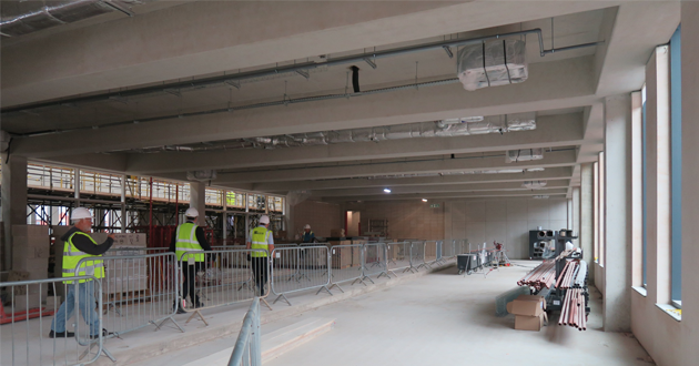 November 2018: Internal walls going in – classroom, lecture theatre, sports facilities, perhaps?