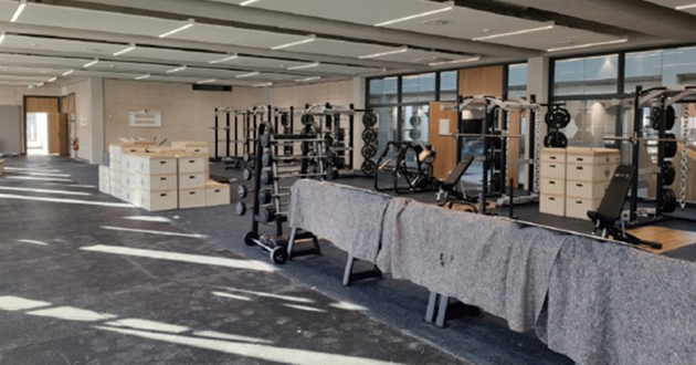 Nov 2019: Looking in on our new sports facilities, including a strength and conditioning gym with six racks, large rig and changing facilities.